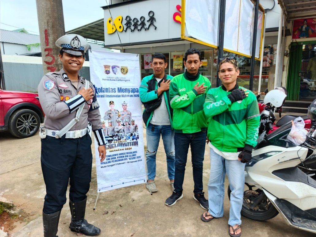 Satlantas Polres Kukar Sosialisasikan Operasi Keselamatan Mahakam 2026 kepada Masyarakat dan Pengemudi Ojol