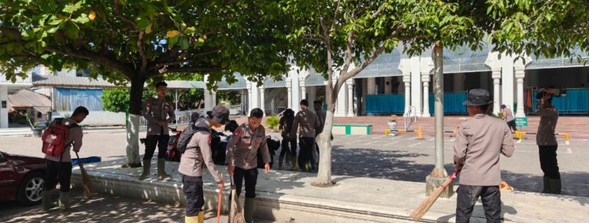 Usai distribusi bantuan, personel bergerak menuju Masjid Al-Hikmah Cunda yang berlokasi di Jalan Masjid Cunda, Uteun Kot, Kecamatan Muara Dua, Kota Lhokseumawe. Di lokasi tersebut, personel Brimob melaksanakan kerja bakti membersihkan sisa lumpur dan sampah yang terbawa arus banjir. Upaya ini dilakukan agar fasilitas ibadah dapat segera digunakan kembali oleh masyarakat.