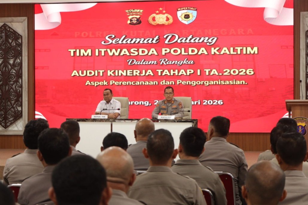 Kukar – Kapolres Kutai Kartanegara, AKBP Khairul Basyar, menyambut langsung pelaksanaan Audit Kinerja Tahap I Tahun Anggaran 2026 oleh Tim Itwasda Polda Kaltim yang digelar pada Senin (23/2/2026) pukul 10.10 WITA di Ruang Catur Prasetya, Lantai III Mako Polres Kutai Kartanegara.
