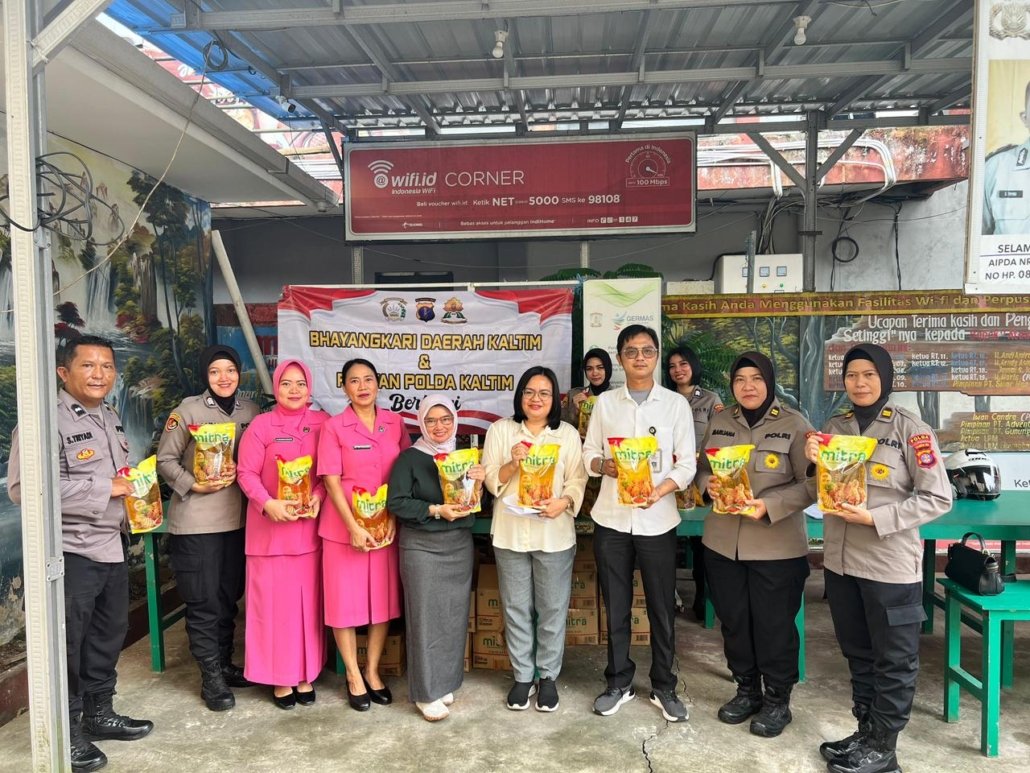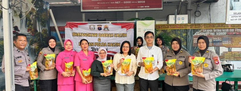 Dalam kegiatan tersebut, Polwan Biro Logistik Polda Kalimantan Timur bersama Bhayangkari Daerah Kaltim menyalurkan sebanyak 100 bungkus minyak goreng kemasan 2 liter kepada warga di Kelurahan Damai Baru.