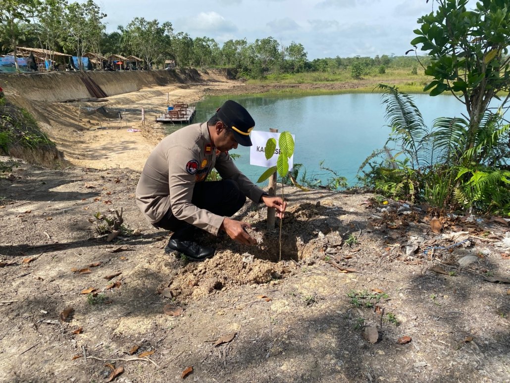 Gerakan Indonesia Asri, Kapolsek Muara Kaman Bersama TNI dan Masyarakat Tanam Pohon di Wisata Danau Biru