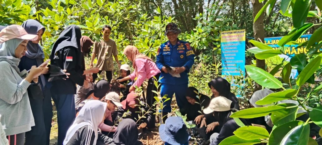 Tribratanews.kaltim.polri.go.id, Balikpapan – Sebagai wujud komitmen Polri dalam mendukung pelestarian lingkungan pesisir, personel Binmas Air Ditpolairud Polda Kaltim melaksanakan kegiatan edukasi lingkungan sekaligus penyemaian bibit mangrove bersama mahasiswa STIEPAN Balikpapan. Kegiatan berlangsung di Kawasan Konservasi Mangrove Muara Rapak, Kec.Balikpapan Utara, Minggu (01/03/25).