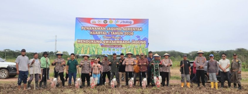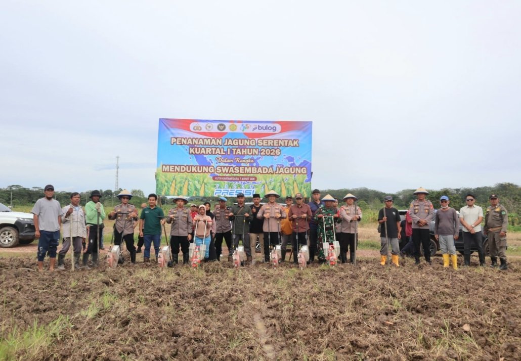 Kukar – Kepolisian Resor (Polres) Kutai Kartanegara menunjukkan komitmen nyata dalam mendukung program Astacita Presiden RI terkait ketahanan pangan dan kemandirian ekonomi. Hal ini dibuktikan dengan digelarnya kegiatan Penanaman Jagung Serentak Kuartal I Tahun 2026 yang dipusatkan di lahan eks PT Kitadin, Desa Embalut, Kecamatan Tenggarong Seberang, Sabtu (07/03/2026) sore.