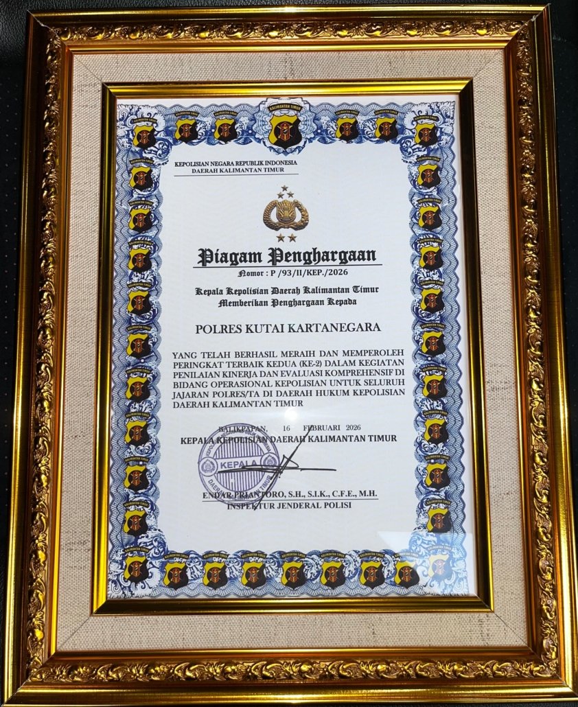 “Penghargaan ini bukan hanya untuk pimpinan, tetapi untuk seluruh anggota yang telah bekerja dengan penuh tanggung jawab, serta dukungan masyarakat Kutai Kartanegara yang terus bersinergi bersama Polri dalam menjaga situasi kamtibmas tetap aman dan kondusif,” ujar Kapolres.
