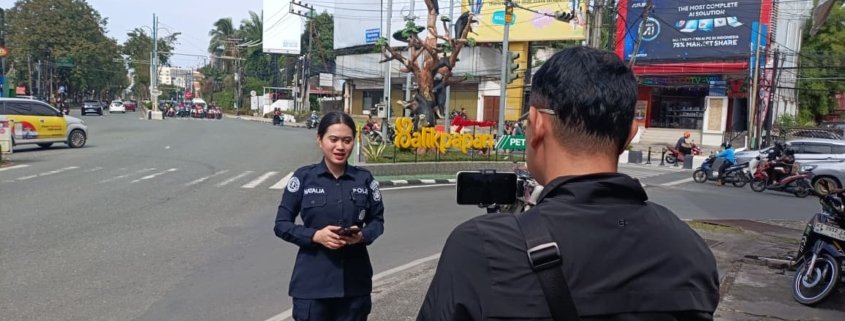Balikpapan – Personel Satuan Tugas (Satgas) Humas Operasi Ketupat Mahakam 2026 Polda Kalimantan Timur melaksanakan kegiatan live report di kawasan persimpangan lampu lalu lintas (TL) Beruang Madu, Kota Balikpapan, Senin (16/3/2026).