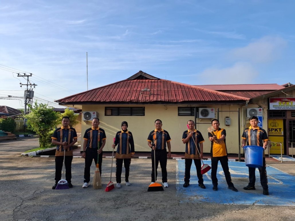 Kegiatan ini meliputi pembersihan sampah di area perkantoran, penataan halaman, hingga memastikan setiap sudut fasilitas publik di sekitar Mako dalam keadaan rapi dan bersih. Kapolsek Loa Kulu menegaskan bahwa lingkungan yang asri merupakan fondasi awal dalam memberikan pelayanan yang nyaman bagi masyarakat.