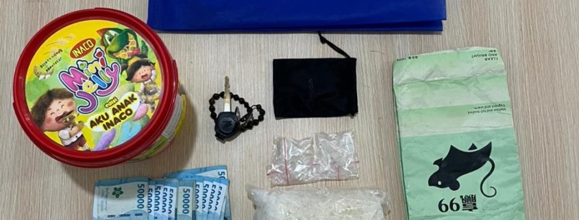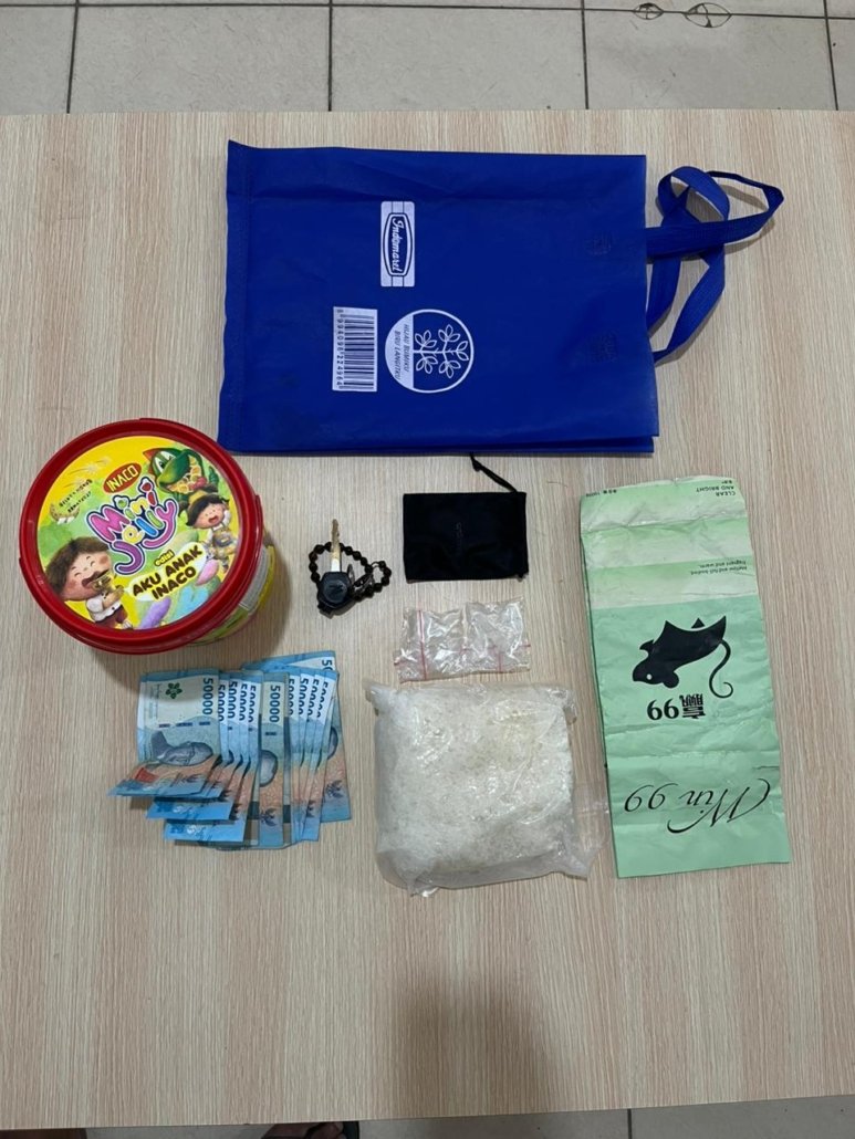 Pria tersebut adalah AA (24), warga Samarinda. Saat dilakukan penggeledahan, petugas dibuat terperangah. Di tangan kiri tersangka ditemukan dua bungkus sabu, sementara di tangan kanannya, ia menggenggam tas belanja berwarna biru yang berisi toples jelly. Setelah dibongkar, toples tersebut ternyata digunakan untuk menyembunyikan narkotika jenis sabu seberat 1.026,3 gram (1 kg lebih).
