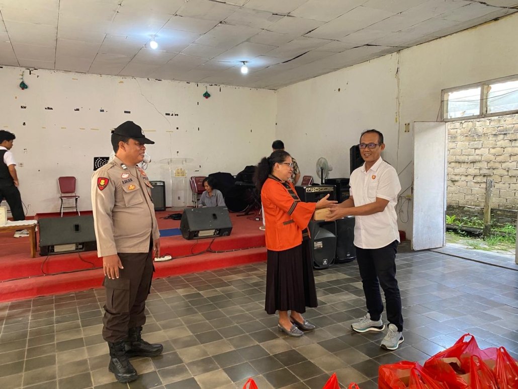 Wujudkan Toleransi, Polres Kukar Gelar “Minggu Kasih” dengan Berbagi Makanan di Gereja Christian Center