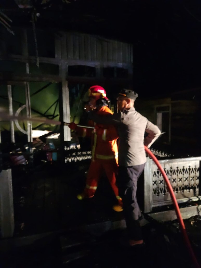 Kukar – Di tengah keheningan dini hari yang berubah menjadi kepanikan, jajaran Polsek Kota Bangun hadir bukan sekadar sebagai petugas keamanan, melainkan sebagai sandaran bagi warga Desa Liang yang tengah berduka. Kebakaran hebat yang melanda Dusun Kampung Baru pada Kamis (23/04/2026) dini hari tadi menyisakan duka mendalam bagi lima keluarga yang kehilangan tempat bernaung.