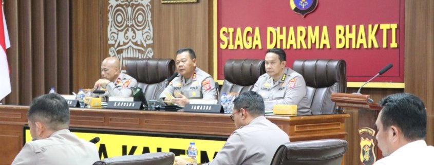 Tribratanews.kaltim.polri.go.id, Balikpapan – Kapolda Kalimantan Timur Irjen Pol Endar Priantoro, S.H., S.I.K., C.F.E., M.H. memimpin langsung Rapat Analisa dan Evaluasi (Anev) terkait situasi kamtibmas terkini di wilayah hukum Polda Kaltim, yang digelar di Rupatama Polda Kaltim, Senin (27/4/2026).