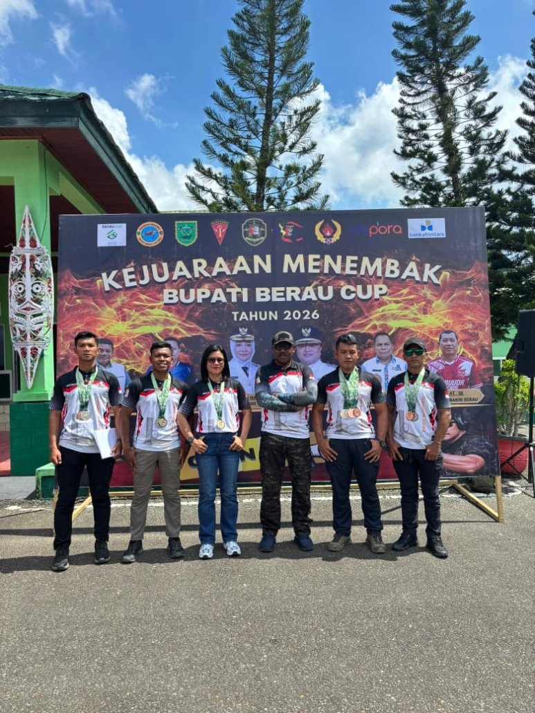 Tribratanews.kaltim.polri.go.id, Berau – Prestasi membanggakan kembali ditorehkan oleh Tim Menembak Satbrimob Polda Kalimantan Timur dalam ajang Kejuaraan Menembak Bupati Berau Cup 2026. Dalam kompetisi yang berlangsung selama empat hari, mulai 23 hingga 26 April 2026 di Lapangan Tembak Sangkuriang, Batalyon Armed 18 Buritkang, tim berhasil mengoleksi total 15 medali dari berbagai nomor perlombaan.