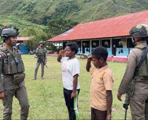 Satgas Ops Damai Cartenz 2026 Latih Disiplin dan Karakter Siswa SD Dondobaga di Mulia
