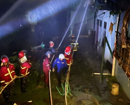 Respons Cepat Tim Pammat Polda Kaltim Bantu Padamkan Kebakaran Rumah di Kelandasan Ilir