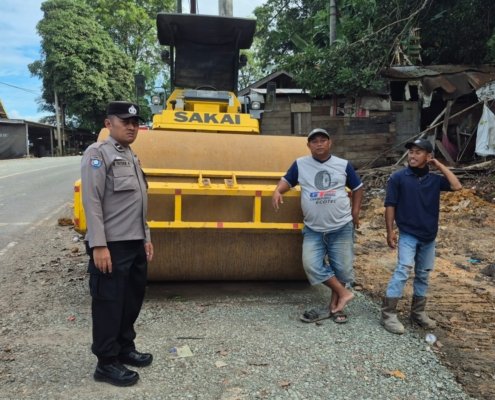 Bhabinkamtibmas Batuah Tekankan Protokol Keselamatan Kerja kepada Pekerja Proyek Jalan