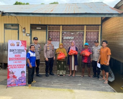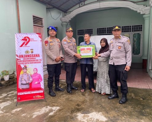 Polsek Tenggarong Seberang Salurkan Bantuan Sosial ke Warga Kurang Mampu Sambut Hari Bhayangkara ke-79