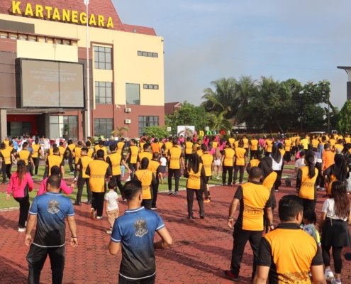 Senam dan Jalan Sehat Warnai Peringatan Hari Bhayangkara Polres Kukar