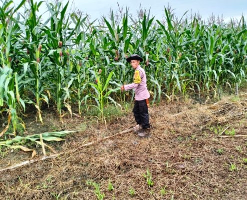 Dekatkan Diri ke Petani, Bhabinkamtibmas Polsek Tenggarong Seberang Sambang Kebun Warga Dukung Program Ketahanan Pangan