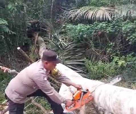 Polsek Loa Janan dan Relawan Sigap Tangani Pohon Tumbang di Jalan Poros KM 56