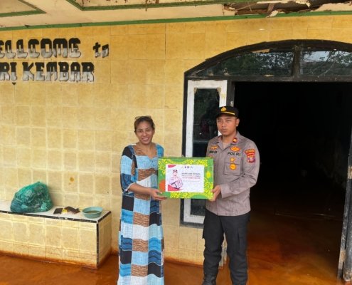 Peduli Korban Banjir, Polsek Tenggarong Seberang Salurkan Bantuan Sosial ke Warga Desa Manunggal Jaya