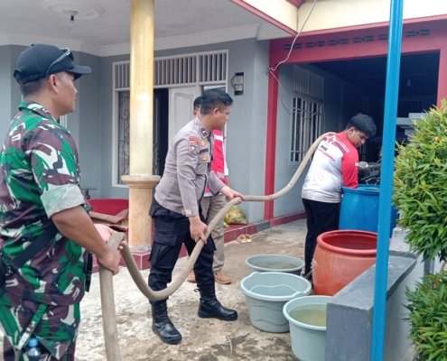 Bhabinkamtibmas Polsek Loa Janan Bersama PMI dan Pemdes Desa Loa Janan Ulu Salurkan Air Bersih untuk Warga Terdampak Banjir