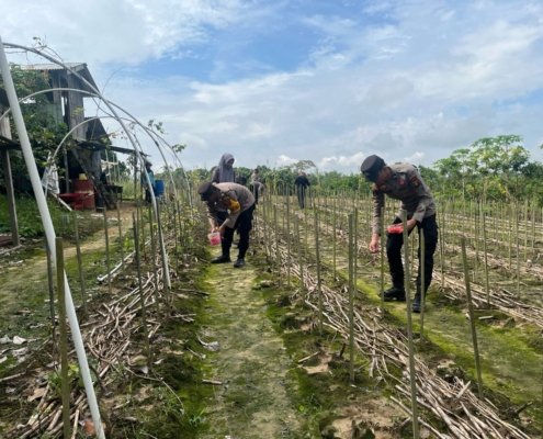 Kanit Binmas dan Bhabinkamtibmas Kelurahan Pendingin Dukung Ketahanan Pangan Warga Lewat Kegiatan Sambang