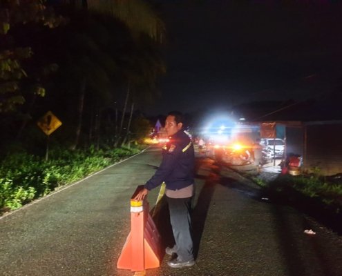 Tanggap Darurat! Polsek Loa Janan Pasang Barier Amankan Jalan Turun di Km 28 Soekarno Hatta