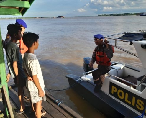 Sat Polairud Polres Kutai Kartanegara Himbau Anak-Anak untuk Berhati-hati saat Bermain di Pinggiran Sungai
