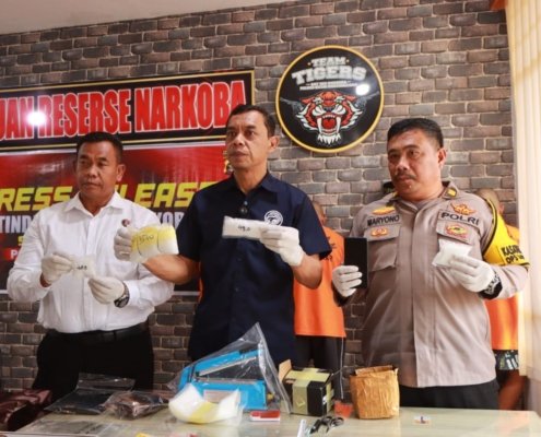 Pklres Kukar Gelar Konferensi Pers Pengungkapan Narkotika Setengah Kilogram di Samboja