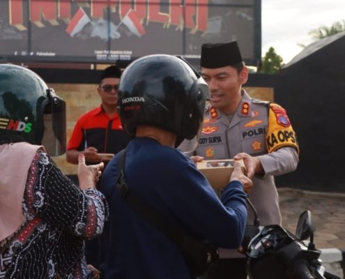 Polres Kutai Kartanegara Bagi Takjil kepada Masyarakat di Depan Mapolres