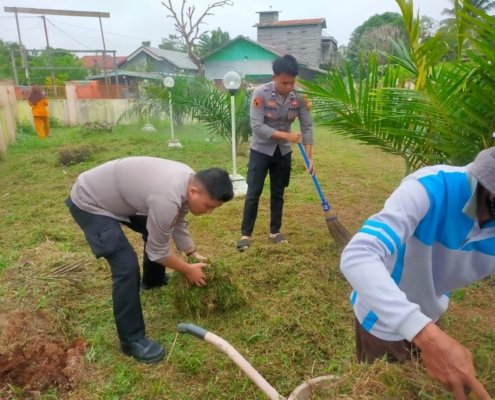 Sambut Ramadhan, Polsek Kota Bangun Bersama Warga Gotong Royong Bersihkan Tempat Ibadah