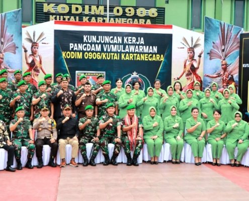 Bentuk Sinergitas TNI-Polri, Kapolres Kutai Kartanegara Turut Menyambut Kunjungan Kerja Pangdam VI/Mlw di Kodim 0906/Kkr