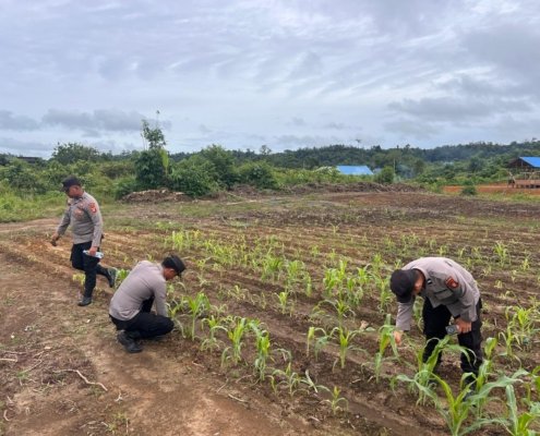 Dukung Ketahanan Pangan, Personel Polsek Tabang Lakukan Pengecekan dan Perawatan Lahan Jagung