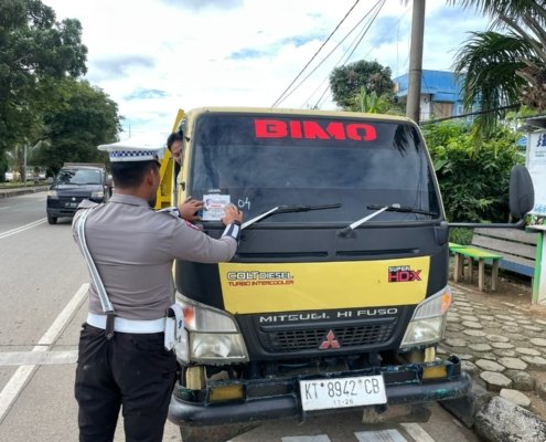 Satlantas Polres Kutai Kartanegara Bagikan Stiker Tertib Berkendara