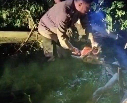 Polsek Loa Janan Eavakuasi dan Bersihkan Pohon Tumbang di Jalan Poros Samarinda-Balikpapan