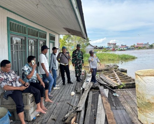 Keramba Ikan dan Perahu Hancur Dihantam Tug Boat, Personel Polsek Muara Muntai Amankan TKP