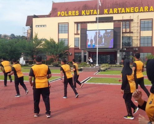 Kukar – Jajaran Polres Kutai Kartanegara menggelar apel olahraga…