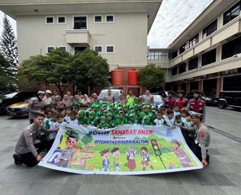 Polisi Sahabat Anak, Ditlantas Polda Kaltim Terima Kunjungan TK Islam Rahmaniah di Mako Polda Kaltim