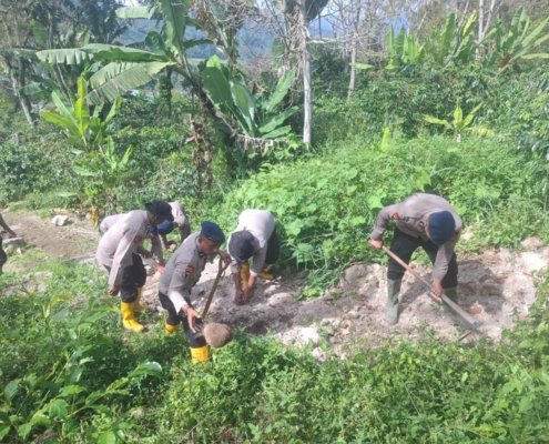 Polres Bener Meriah dan Brimob Polda Aceh Bangun Jembatan Darurat di Kampung Setie Kecamatan Timang Gajah