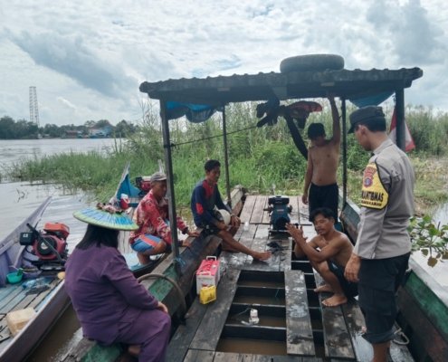 Polsek Muara Kaman Sigap Tangani Laka Air Kapal Feri Tenggelam di Sungai Mahakam