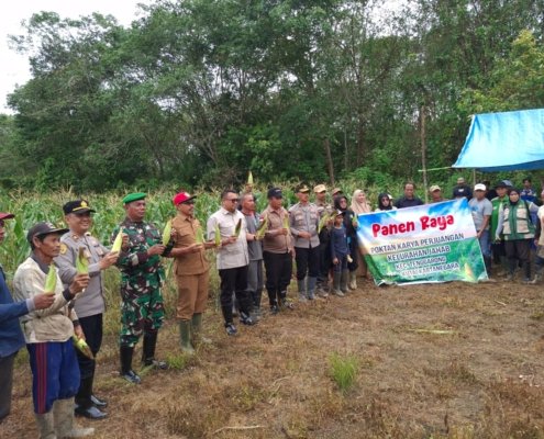 Polres Kukar Dukung Ketahanan Pangan, Kapolsek Tenggarong Hadiri Panen Raya Jagung di Kelurahan Jahab