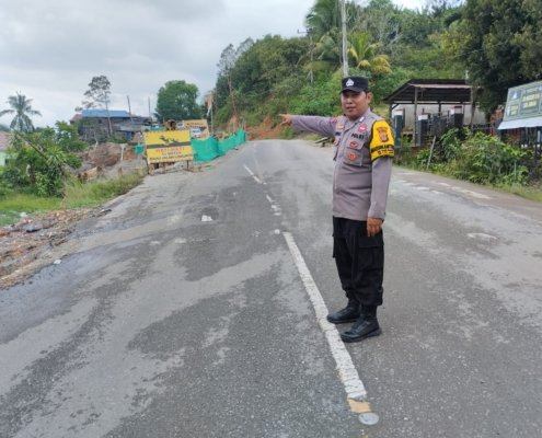 Respons Cepat Bencana, Bhabinkamtibmas Polsek Loa Janan Amankan Arus Lalu Lintas di Lokasi Longsor Desa Tani Bhakti