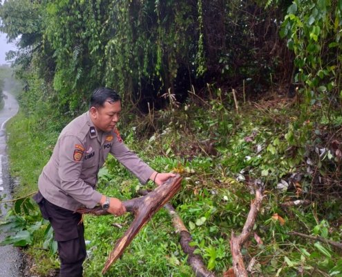 Gerak Cepat Polsek Loa Janan Tangani Pohon Tumbang, Arus Lalu Lintas Kembali Lancar