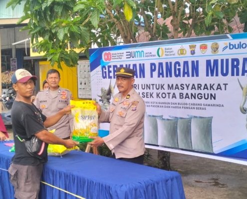 Polsek Kota Bangun Gelar Gerakan Pangan Murah, Sediakan 500 Kg Beras untuk Warga