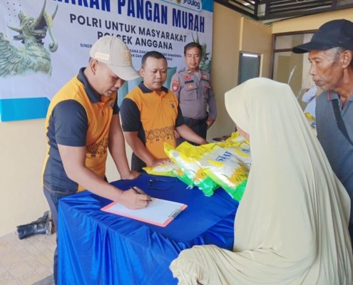 Beras Murah Ludes Terjual dalam Gerakan Pangan Murah Polsek Anggana