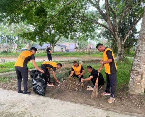 Polsek Sangasanga dan Warga Bersihkan Lapangan Palagan Sambut HUT RI ke-80