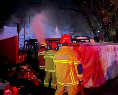 Respons Cepat Brimob Polda Kaltim Padamkan Kebakaran Gerobak Dagang Warga di Balikpapan Selatan