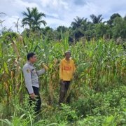 Kukar — Suasana hangat tampak di area perkebunan jagung, pada Senin, 17 November 2025, ketika Bhabinkamtibmas, Aipda Daris, menyambangi para petani untuk mendukung program ketahanan pangan sekaligus menyampaikan imbauan kamtibmas.